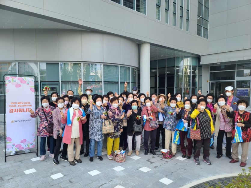 5월 6일(금), 어버이날을 맞이하여 북구노인종합복지관에서는 어르신들께 감사함을 담아 카네이션 꽃을 달아드리는 행사 및 어버이날 선물을 전달하였습니다.