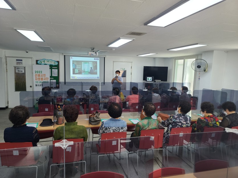 6월 3일(금) 선배시민 자원봉사단 그린·나눔누리봉사단 참여자분들을 모시고 자원봉사자 교육을 진행하였습니다.