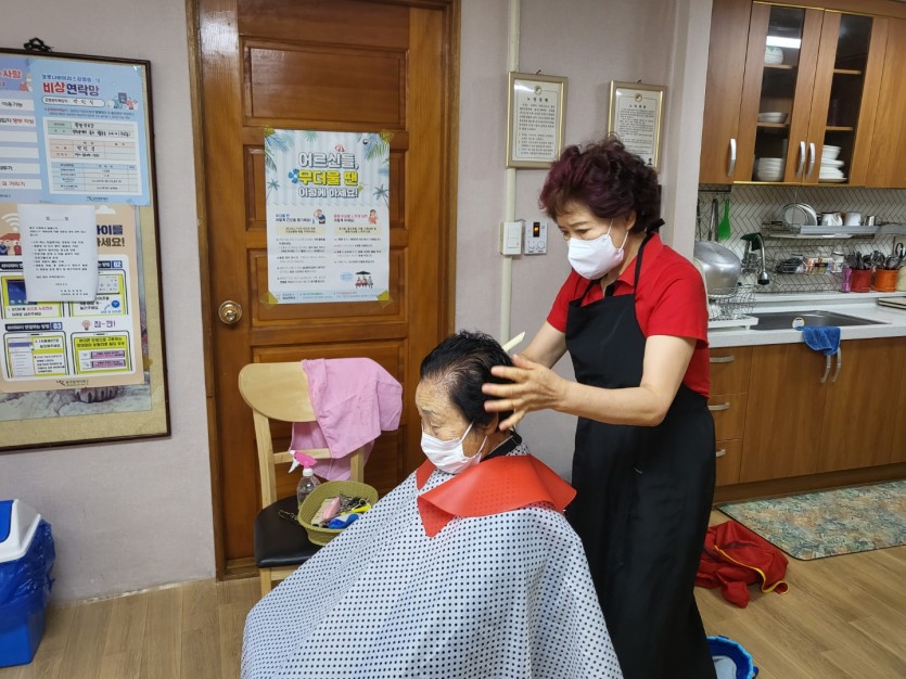 10월 6일(목) 노인 일자리 참여자와 연계하여 참판 경로당을 방문하여 이용 어르신을 대상으로 이미용 서비스를 진행하였습니다. 어르신들께서 경로당을 이용하면서 머리 손질을 받을 수 있어 매우 만족스러워하셨으며, 어르신들의 건강한 노후를 위한 유익한 시간이 되었습니다.