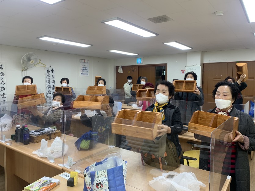 수납함 만들기를 하면서 어르신들의 꼼꼼함을 볼 수 있는 시간이 되었습니다.