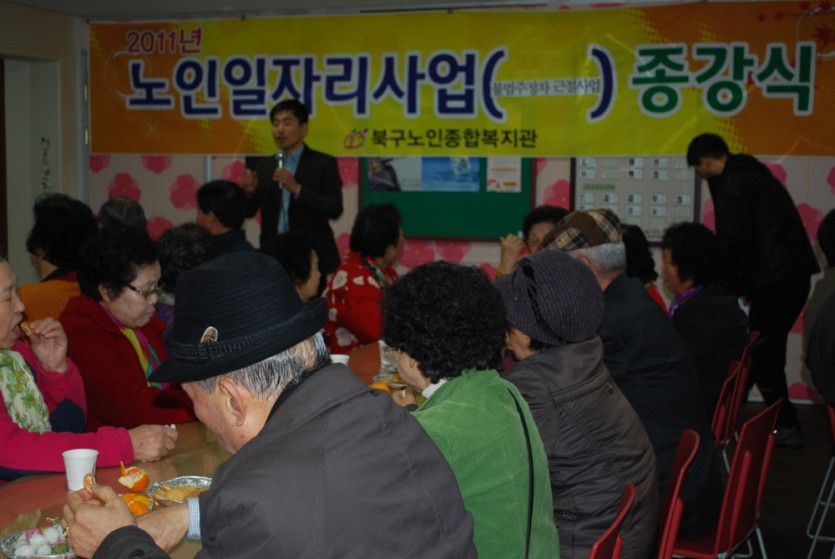 이에 사업 종강식을 실시하였다. 어르신들이 내년 일자리를 모두 희망을 하였고 어르신 의견을 수렴하여 2012년 사업에 반영한다.