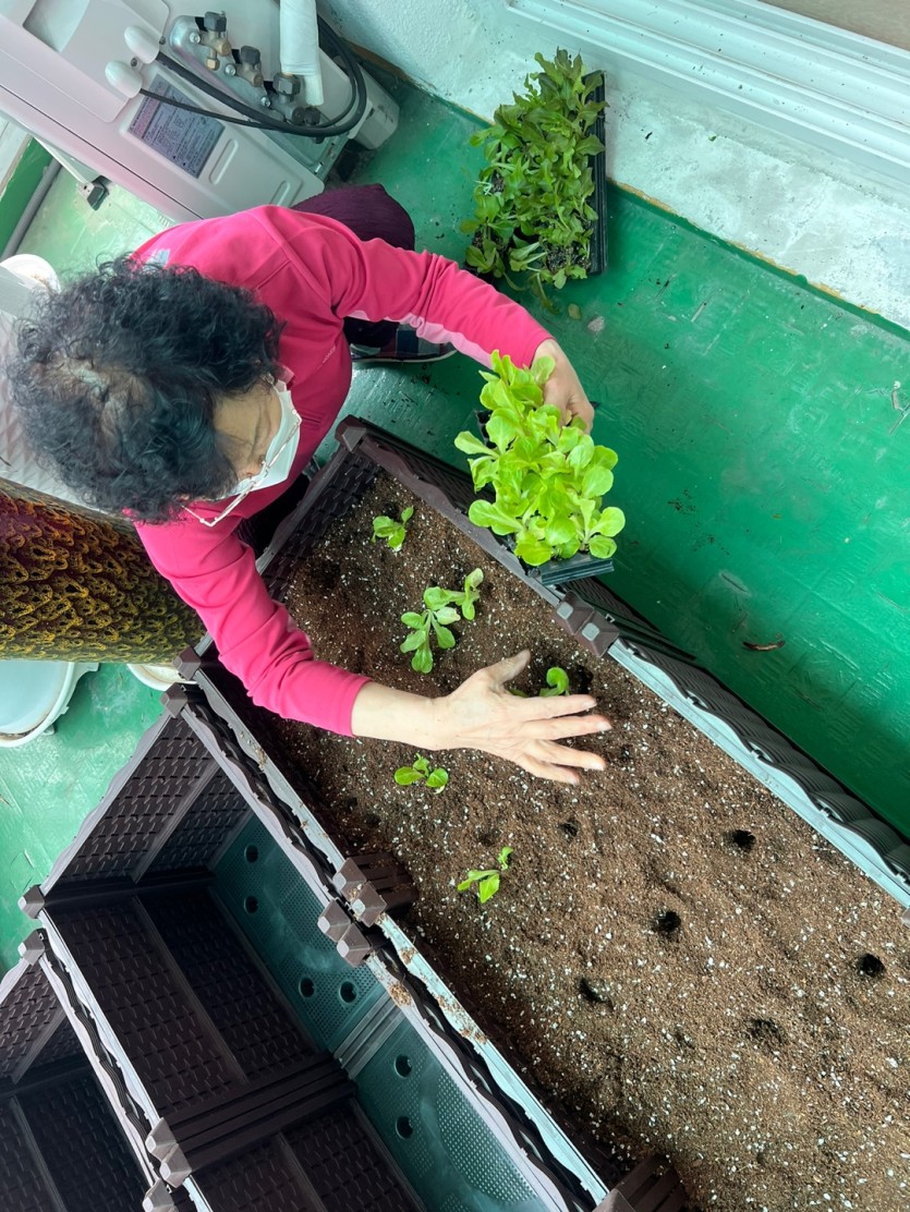 텃밭을 가꾸는 과정에서 실내 활동이 아닌 실외 활동을 즐기며, 책임감과 소속감을 느끼는 동시에, 경로당 회원들간의 교류와 활동을 장려하였답니다.