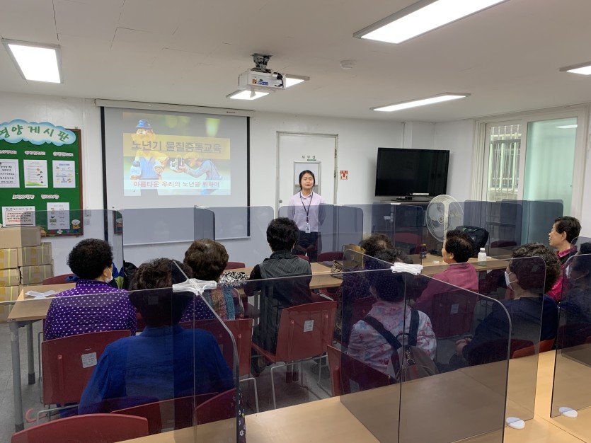 중독 관련 교육은 처음 진행하는 것으로 어르신들에게 중독에 대해 먼저 알려드리고 영상 교육을 통해 중독에 대한 경각심을 갖게하는 시간이 되었습니다. 중독에 대한 올바른 인식과 태도를 형성하고 중독으로 인하여 발생하는 다양한 폐해에 대해 이해하는 시간을 만들어주신 북구중독관리통합지원센터에 감사인사드립니다^^