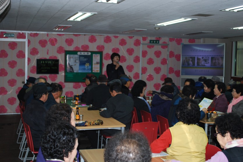 2012년 노인일자리 사업 수행에 앞서 소양 교육 및 직무교육을 2월 27에서 3월 9일까지 각 유형별로 실시하였다. 몸은 고달프지만 그래도 어르신들의 손길이 필요로 하는 곳에 아낌없는 손을 내밀고자 하시는 어르신들이 자랑스럽습니다.