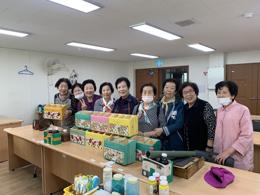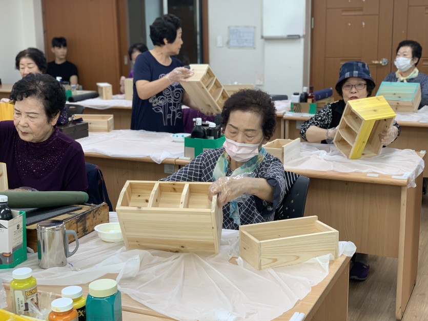 이번에는 원목다용도함 만들기로 색깔을 입히고 서랍을 꾸며가며 프로그램을 즐기는 시간이 되었습니다.