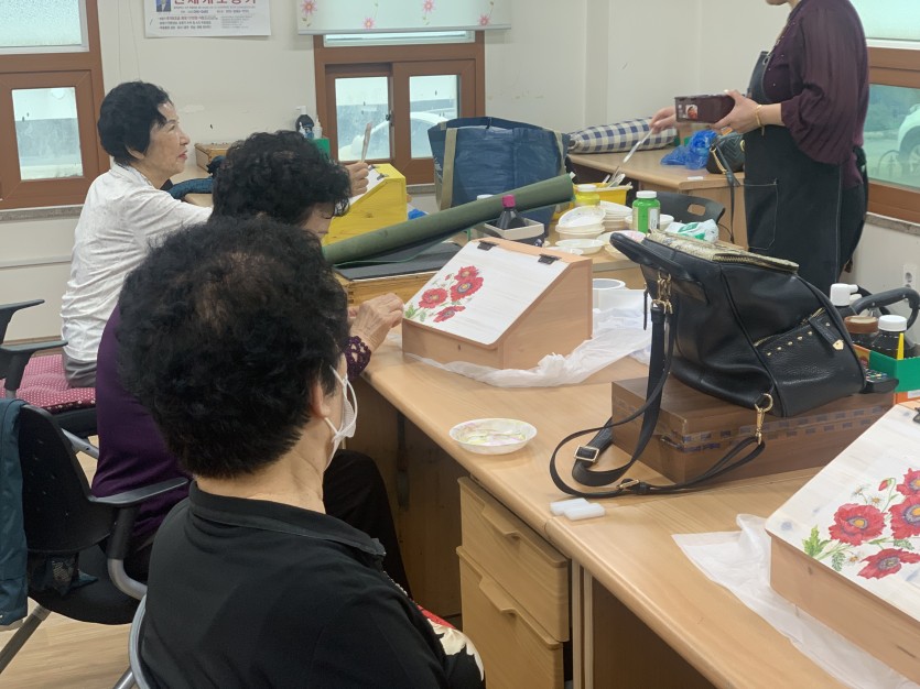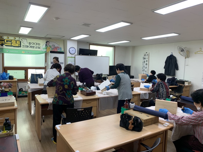 이번수업은 원목함 만들기로 어르신들이 색칠하고 꾸미는 활동을 할 수 있었습니다.