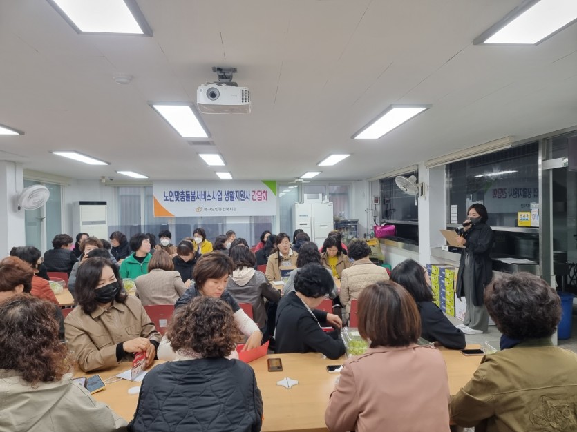 2023년 노인맞춤돌봄서비스사업 하반기 간담회를 통하여 그동안 현장에서 수고하신 생활지원사 선생님들의 노고를 위로하고 입사연도에 따른 연차일수 산정방법 및 복지포인트 지급에 대하여 안내해 드리고 사업에 대한 궁금한 점들을 묻고 답하며 소통하는 시간을 갖고 대상자 어르신에게 질 좋은 서비스를 제공하며 더욱 더 성장하는 기관이 될 수 있도록 서로를 독려하는 뜻깊은 시간이 되었습니다.