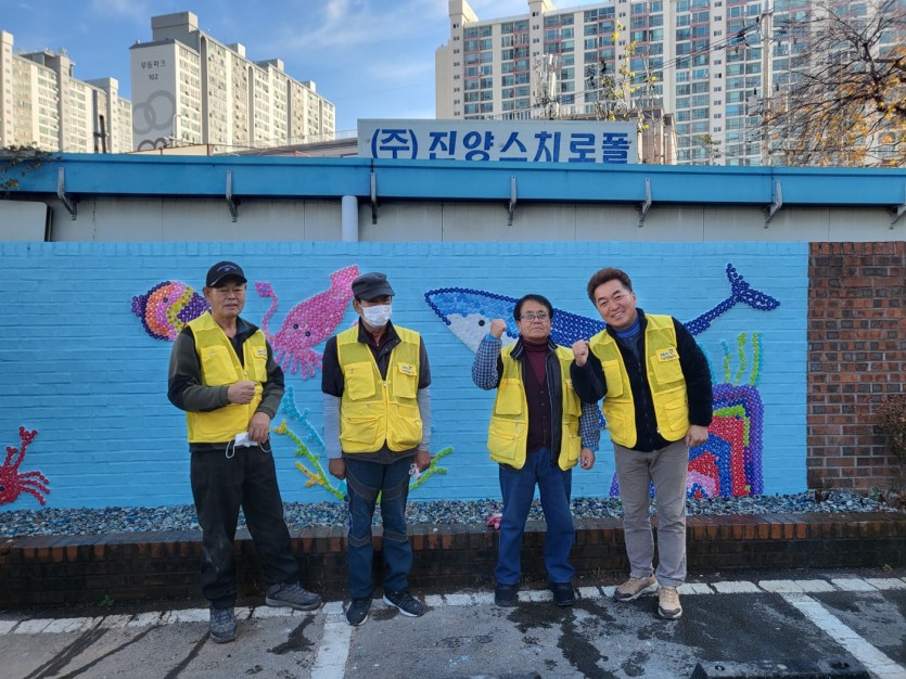 플라스틱 병뚜껑 벽화 꾸미기 사업은 급변하는 기후변화 대책마련과 폐품 재활용 재생사업 일환으로 진행되었습니다.