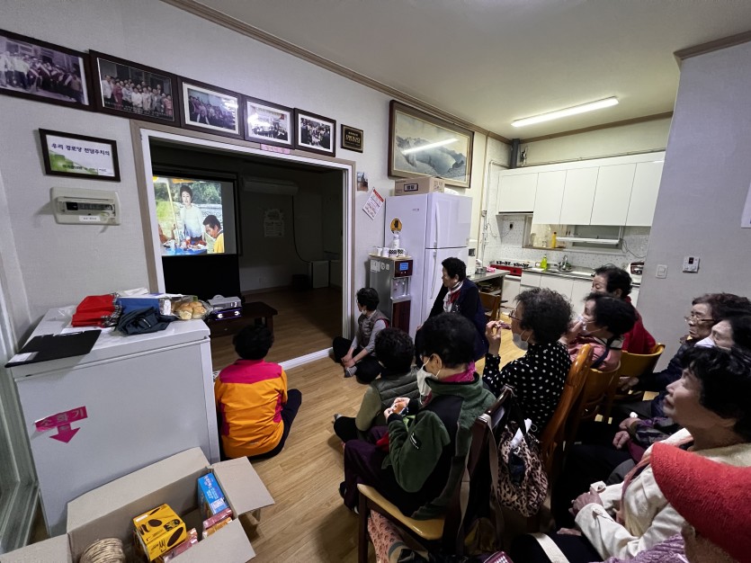 3월 경로당에 방문하여 영화 상영을 진행하였습니다.