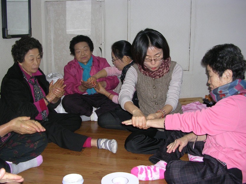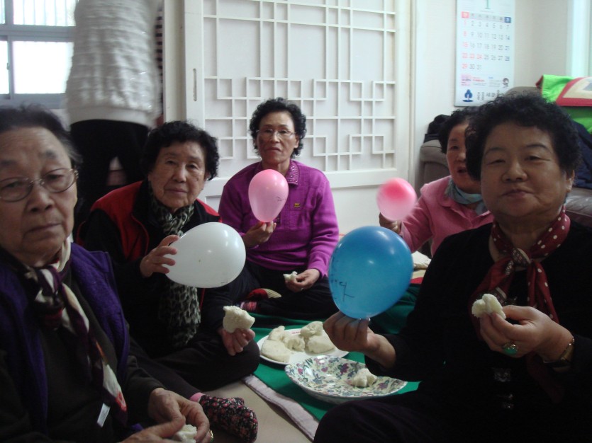 어르신들의 건강을 위하여 손맛사지와 새해를 맞이하여 소원을 풍선에 써서 빌어보는 시간을 가졌다.