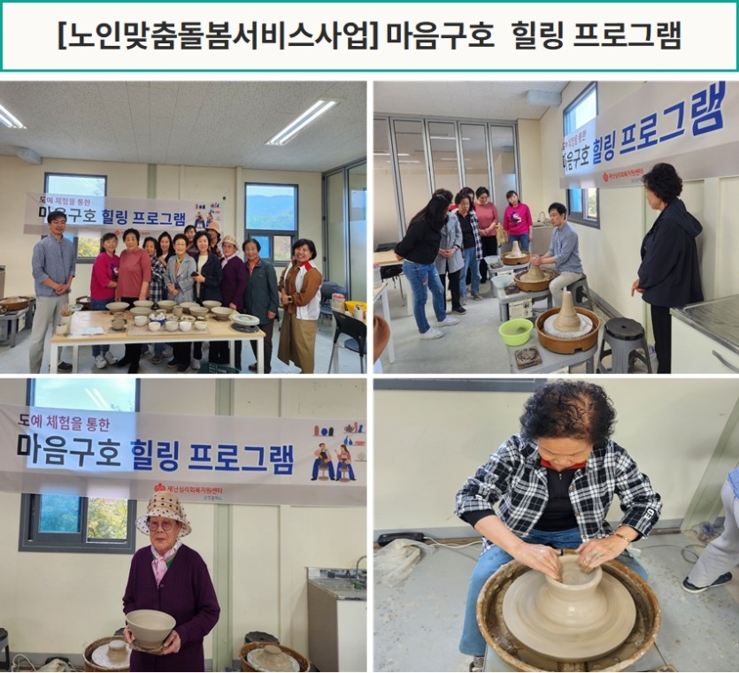 부드러운 흙을 손으로 다루며, 어르신들이 자신의 생각을 담아 원하는 그릇을 완성하는 과정을 통해 정서적인 안정을 찾고, 심리적인 회복을 도울 수 있었습니다.