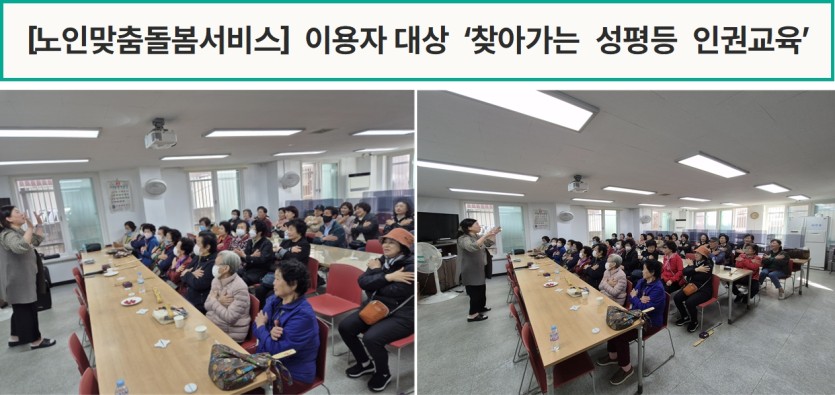 노인맞춤돌봄서비스 이용자 대상자를 대상으로 ‘찾아갖는 성평등 인권교육’을 진행했습니다.