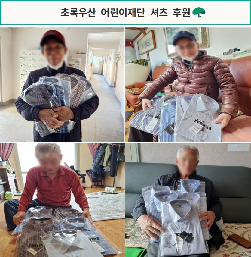 초록우산 어린이재단에서 어르신들을 위해 셔츠를 후원해 주셨습니다.