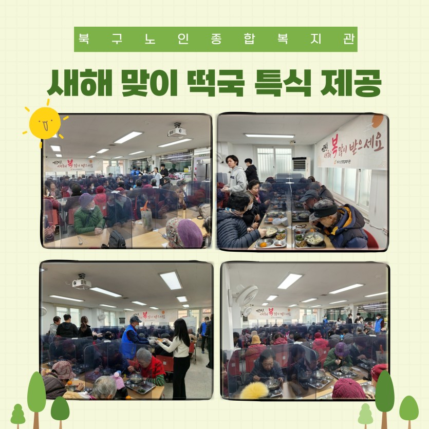 북구노인종합복지관 사랑의식당에서는 새해 신년 인사와 함께 정성스런 마음을 담아 떡국 한그릇을 대접해 드렸습니다.