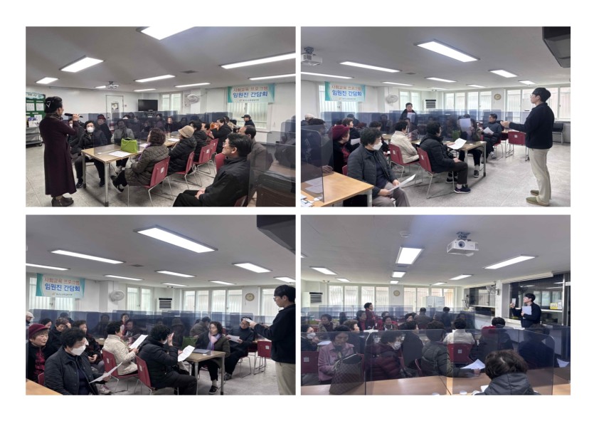 3월 18일(화), 사회교육프로그램 1분기 임원진 회의를 진행하였습니다. 회의는 관장님의 인사말로 시작 되었으며, 주요 내용으로는 신규 임원진 소개 및 인사, 프로그램 접수 일정 안내, 복지관 은빛나들이 안내, 기타 안건에 대해 논의가 진행되었습니다.