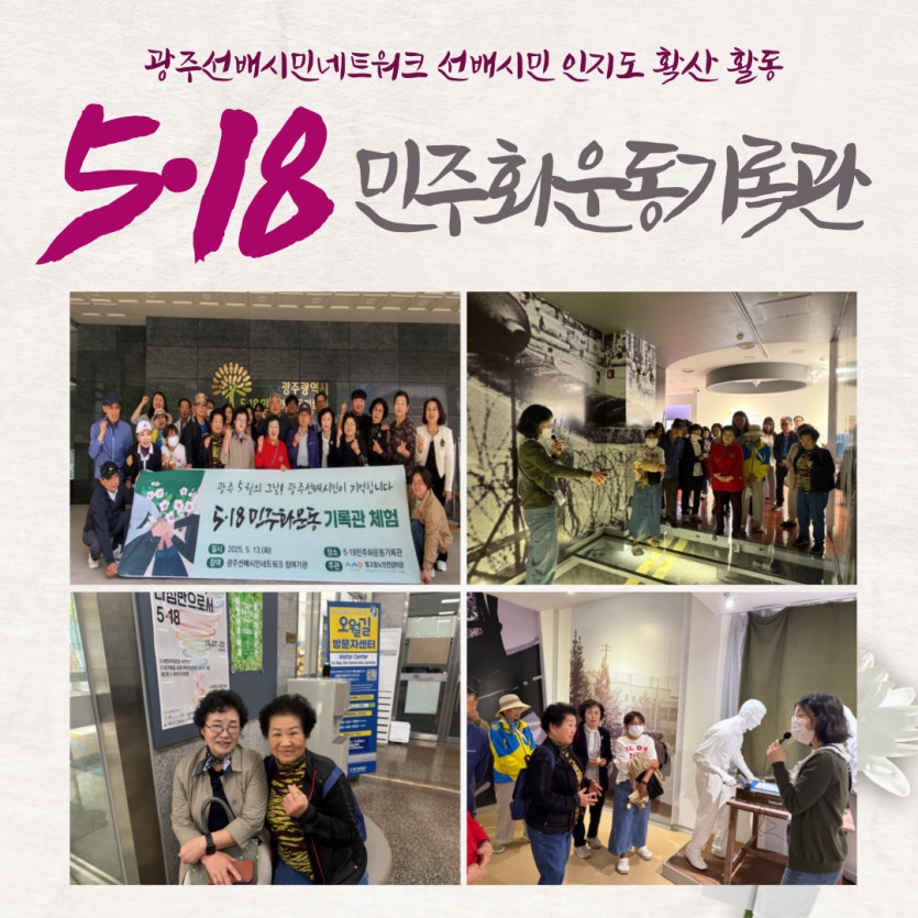 선배시민 어르신들과 광주선배시민네트워크 선배시민 인지도 확산 활동으로 5·18 민주화운동기록관 체험에 참석했습니다.