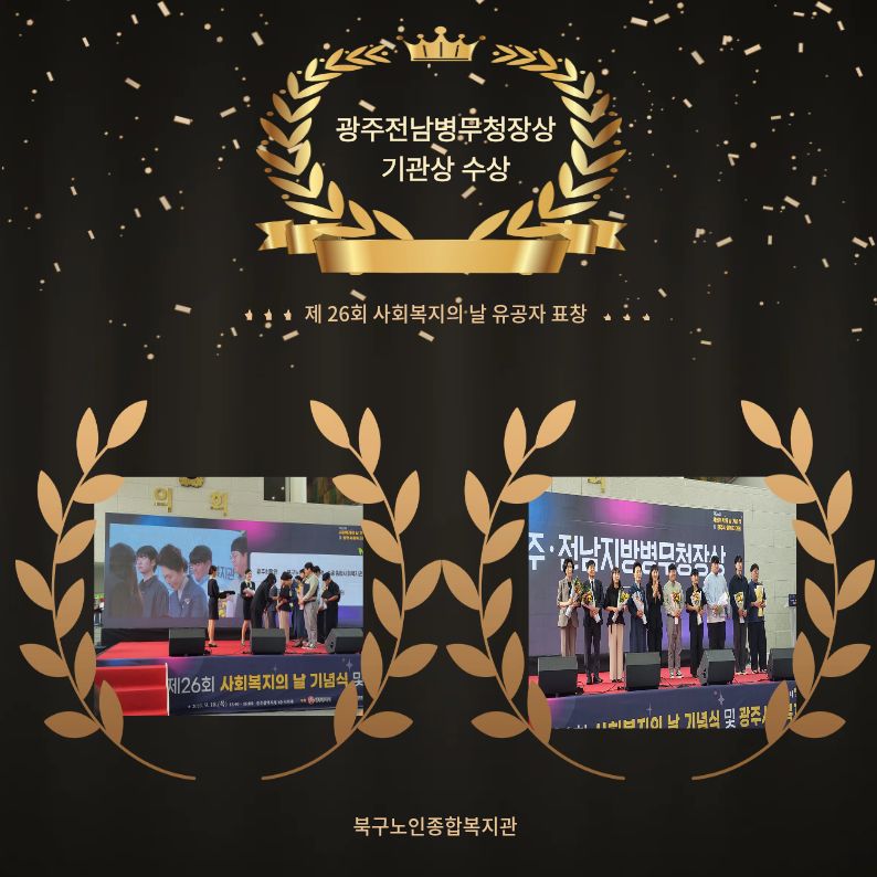 9월 18일(목)에 개최된 제26회 사회복지의 날 기념식 및 광주사회복지대회에서 우리 기관이 사회복지유공자 광주전남병무청장상 기관상을 수상하였습니다.