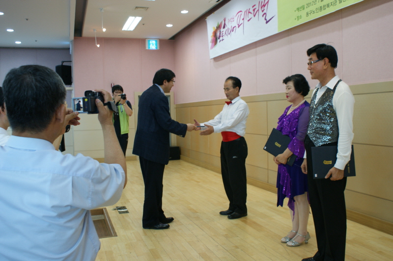 7월 5일(목) 토토시니어페스티벌 대회에 본 기관 스포츠댄스반 10분 어르신들이 출전하여 참가상을 받았다. 당당하고 도전하는 어르신들~수고하셨습니다.