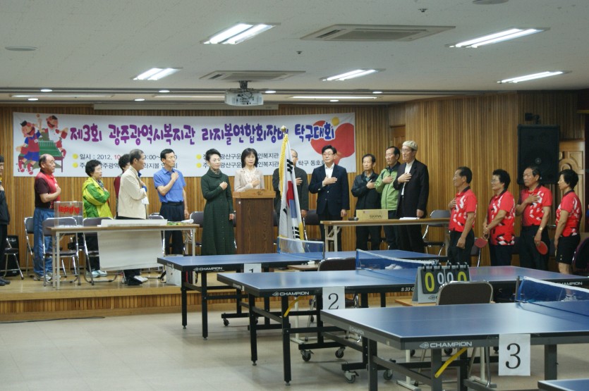 제3회 광주광역시 친선라지볼 어르신탁구대회에 탁구반 어르신 12명이 참가하여 복식 1위, 3위라는 우수한 성적을 거두었습니다. 20대 못지않은 열정을 가지신 탁구반 어르신들 정말 멋지시고 고생하셨습니다. 또 후원해주신 쌀 1포대도 어르신들을 위해 잘쓰겠습니다. 감사합니다.
