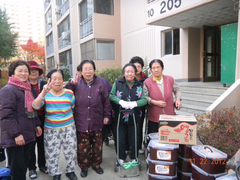 올해도 어김없이 한국야쿠르트에서 김장김치를 전달해 주어서 어르신들의 겨울나기가 한결 수월해졌으며 잊지않고 생각해 주어서 고맙다 하시며, 항상 이맘때가 되면 이제는 기다리신답니다. 내년에도 꼭 부탁드리며, 한국야쿠르트 관계자분들(북구 6개소 대리점)에게 다시한번 감사에 인사를 드립니다.