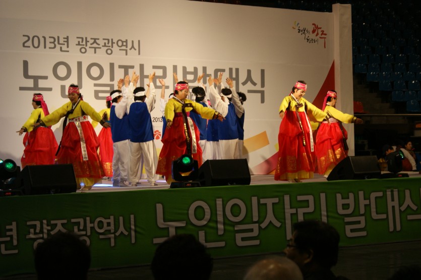 2013년 3월 7일(목) 노인일자리 발대식(염주동실내체육관)에 본 기관 우리춤(난반)어르신 16명이 식전공연으로 갑돌이와 갑순이, 진도아리랑을 공연하였습니다. 신나는음악과 함께 하나가 되어 멋진 공연을 보여주신 어르신들 고생하셨구 너무 감사드립니다.