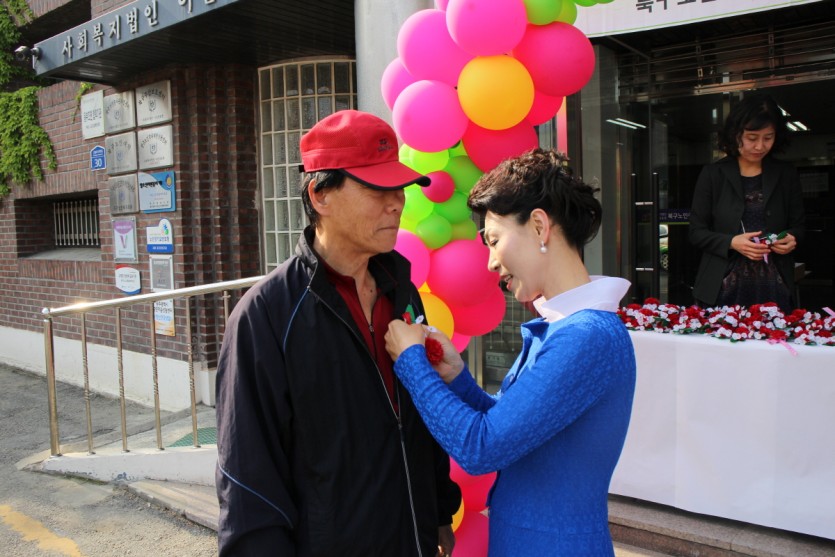 김영옥 관장님 이하 전 직원이 카네이션 한송이 한송이에 사랑과 정성을 담아 일일히 어르신 가슴에 달아드렸고, 내년 어버이날에도 건강하신 모습으로 또 달아드릴 수 있기를 기원하였습니다.