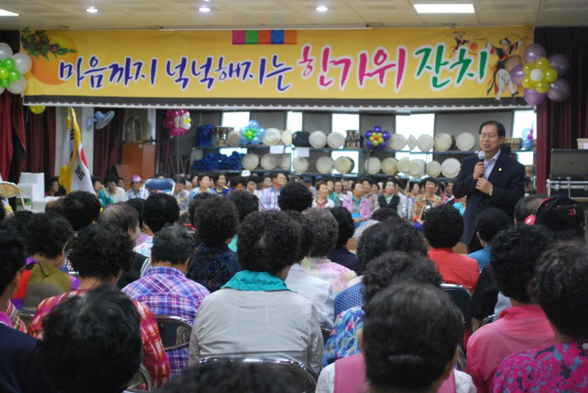 "더도 말고 덜도 말고 한가위만 같아라"처럼 오곡이 무르익어가는 가을. 마음과 몸마저 풍성해지는 한가위를 맞아 2013년 9월 12일 경로잔치를 실시하였습니다. 오전부터 진행된 윷놀이, 투호, 제기차기를 통해 어르신들의 옛 추억을 되새김질도 해 보았고, 오후에 실시된 어르신 장기자랑에서는 북구청장님을 비롯한 의원님들이 오셔서 노래와 춤을 선물함으로써 어느때보다 어르신들께 풍성한 한가위 선물을 주셨습니다.