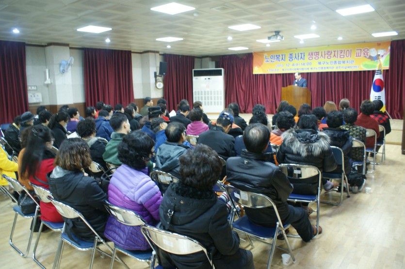12월 4일 오후, 복지관 4층 대강당에서 북구지역사회복지협의체 노인분과에서 주최하고 본 복지관에서 주관한 노인복지종사자 생명사랑지킴이교육이 진행되었습니다. 저희 복지관에서도 직원 및 아우름봉사단을 포함한 자원봉사자들이 교육에 참석하였는데요, 이번교육을 통해 자살에 대한 위험성과 대처방안 등을 배우고 생각해보는 기회가 되었답니다.