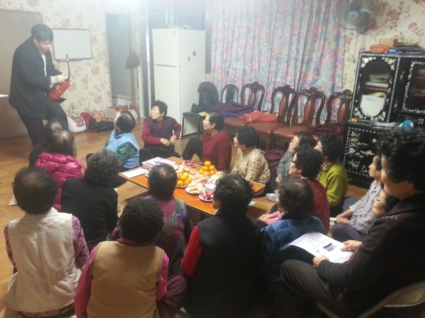 2013년 12월 17일~18일까지 시범경로당 6개소를 방문하여 화재예방 및 위급상황 대처법에 대하여 교육을 실시하였습니다. 어르신들은 "겨울철에 난로와 가스사용에 있어 화재에 대한 예방교육을 미리 들어서 도움이 되었고 소화기 사용법에 대해서 자세히 알 수 있어서 좋았다."며 화재예방교육의 중요성을 알 수 있었습니다.
