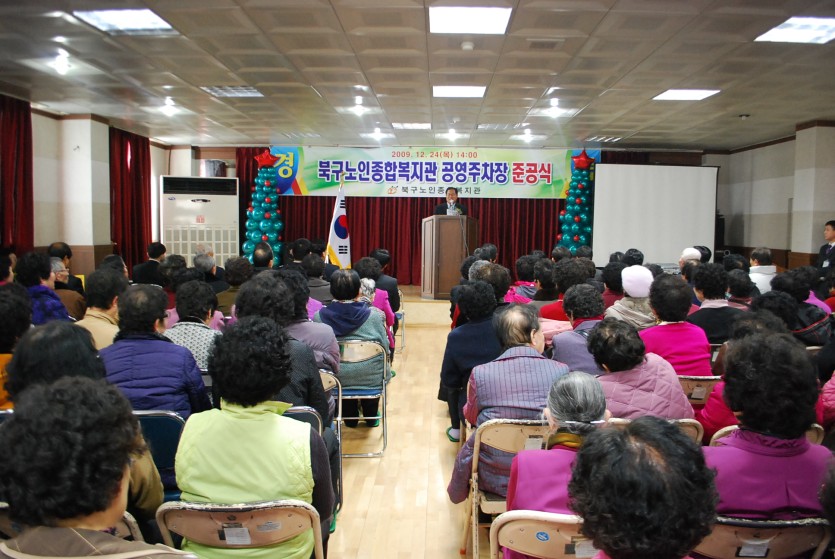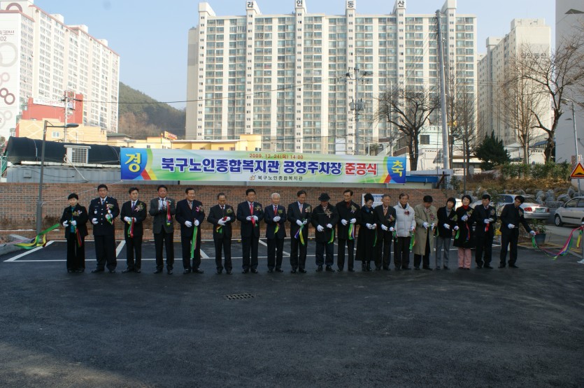 북구노인종합복지관에서는 12월 24일에 그동안 복지관 이용 어르신들의 주차문제를 해소할 수 있는 공영주차장 준공식을 가졌다.