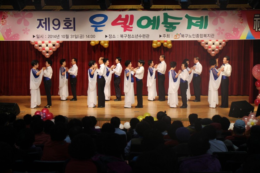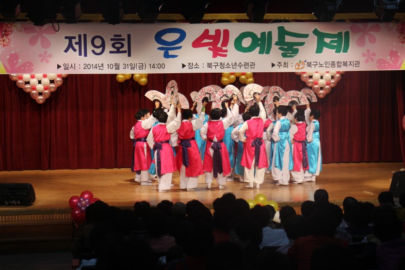 올해에도 어르신들의 기량을 맘껏 뽑내실 수 있는 제 9회 은빛예술제가 10월 31일 북구청소년 수련관에서 있었습니다. 항상 무대에 서면 설레이시고 즐거우시다는 우리 어르신들의 솜씨는 시간이 지날수록 날로 멋져지시는 것 같네요 ~ 어르신들로 하여금 저희 또한 많은 걸 배우고 느끼는 시간이 된 것 같습니다. 어르신들 항상 응원하고 존경합니다 ^^