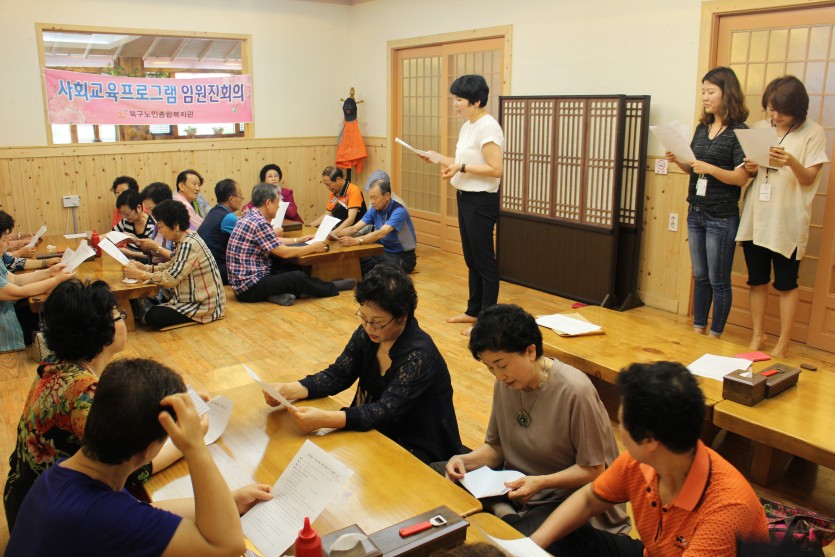 7월 9일(목), 제 2차 북구노인종합복지관 임원진회의를 진행하였습니다. 신규 임원진 소개에서부터 하계방학일정 및 프로그램 접수 등을 논의하는 시간을 가지며 복지관의 발전방향을 모색하는 시간을 가졌습니다. 항상 복지관을 위해 애써주시는 우리 어르신들 감사드립니다^^*