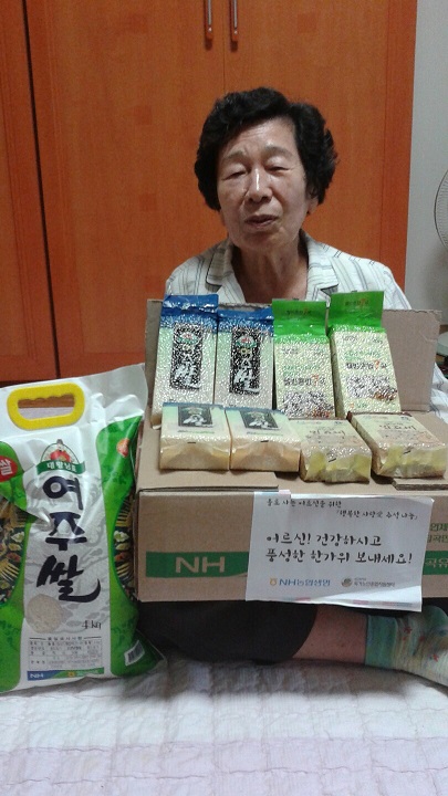 한가위를 맞이하여 독거노인종합지원센터에서 여주쌀과 햅쌀잡곡을 어르신들에게 선물하여 드렸습니다.