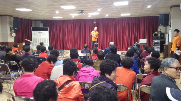 2015년 10월 29일 노인사회활동지원사업 지원봉사사업단 참여자 어르신들을 모시고 화재예방 및 심폐소생교육을 진행하였습니다. 이번 교육을 통해 북구 관내의 취약 어르신들의 자택을 방문하는 어르신들이 위급상황에 침착하게 대처할 수 있는 방법들을 배울 수 있는 기회가 되었습니다.