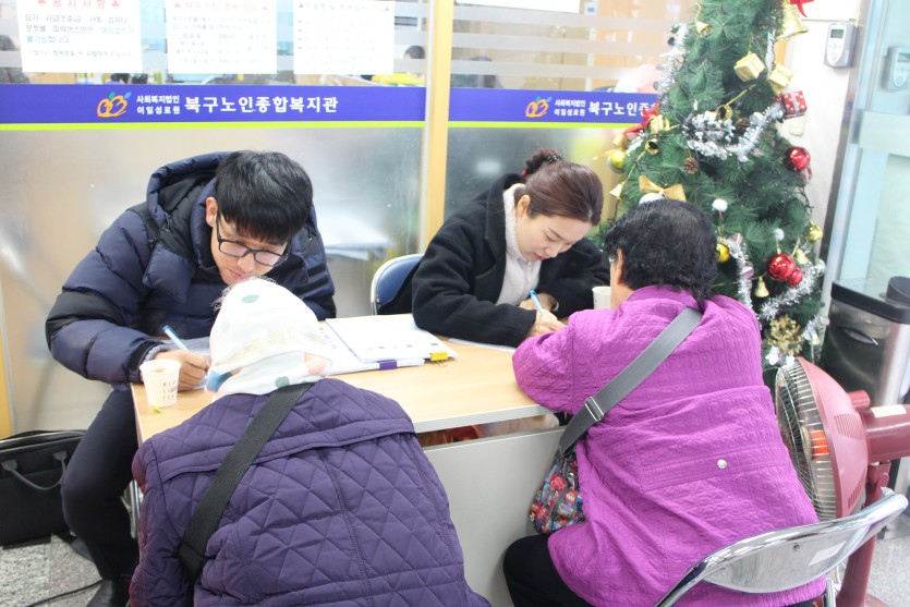 12월 16일(수), 북구건강증진센터와 연계하여 우울증 및 치매검사를 10시부터 2시간 동안 진행하였습니다. 본 기관에서는 어르신들의 정신건강을 위해 분기에 1번씩 우울증 및 치매검사를 실시하고 있으니, 많은 관심과 참여 부탁드립니다.