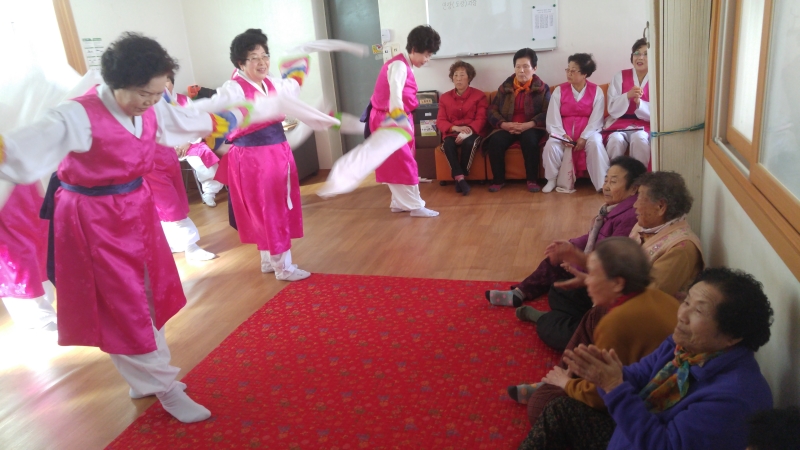 3.10(목) 황계경로당 어르신들을 모시고 은빛공연단의 흥겨운 우리춤 공연을 지원해 드렸습니다. 공연이 끝난뒤 함께 어울려 춤을 추는 시간을 가졌습니다.