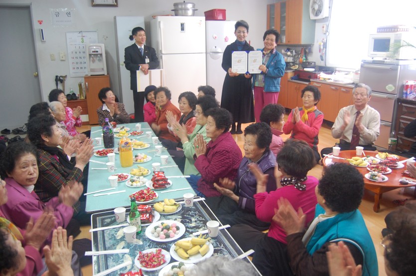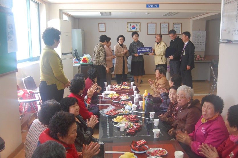 시범경로당 6개소에 현판과 협약서증정을 통해, 활기찬 노후생활과 건전한 노인문화 정착을 위한 경로당 활성화사업의 본격적인 시행을 알리고 간단한 다과회를 통해 축하기념식을 가졌다.