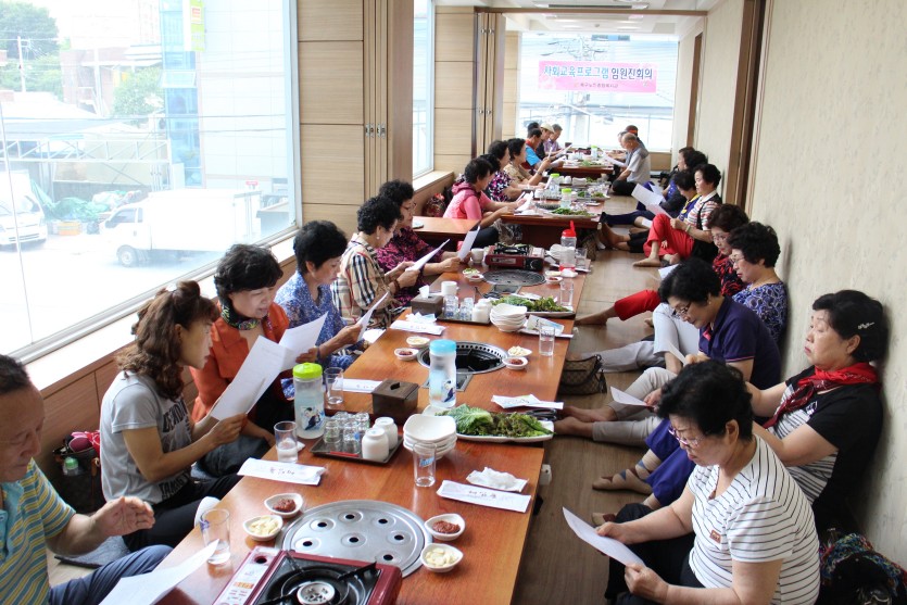 5일(화), 사회교육 프로그램 각 반 반장님들을 모시고 제 2차 임원진회의를 개최하였습니다. 우선 상반기 동안 수고해주신 어르신들에게 감사와 격려의 말씀을 시작으로 회의를 진행하였습니다.