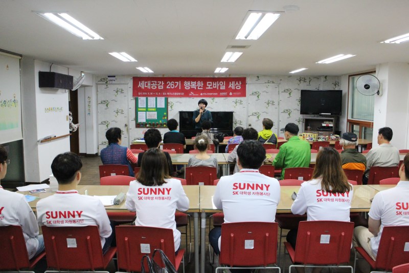 9월30일(금) 26기 1차 휴대폰활용교육 발대식 및 1회차교육이 진행되었습니다. 써니와 함께하는 첫 시간이였지만 짝을 정하는 시간이 있어서 인지 빠르게 친해지고 적응을 하는 모습과 어르신들과 써니봉사단 모두 교육에 서로 적극적으로 참여하는 모습을 보였습니다.