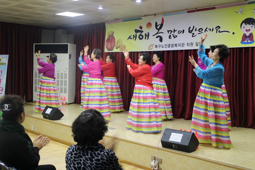 오전에 많은 분들이 참석해주신 가운데 신바람 자원봉사단 공연팀의 색소폰공연과 멜로디언, 하모니카 합주와 은빛 자원봉사단의 우리춤 공연, 자원봉사학생의 바이올린공연, 청운어린이집 어린이들이 부채춤과 댄스공연, 새해 세배인사등의 즐거운 시간을 가져 어르신들과 행복한 시간을 보냈답니다^^