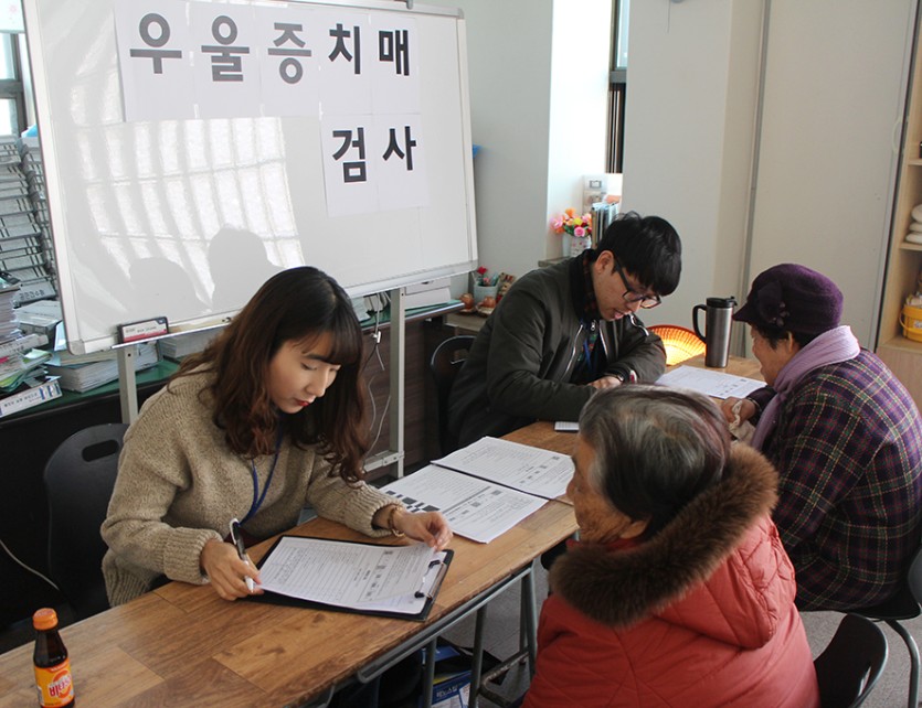 2017년 3월 15일 수요일에 복지관 이용 어르신들을 대상으로 노인우울증 치매 검진 및 상담을 실시 하였습니다.