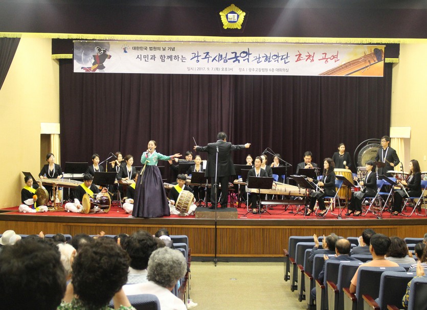 먼저 광주시립국악관현악단의 공연을 관람하였고, 법정 방청 및 법관과의 대화 시간을 가졌답니다. 견학을 다녀오신 어르신들께서 이런 좋은 기회로 멋진 공연도 보고 법원도 둘러볼 수 있었다며 즐거워하셨답니다^^