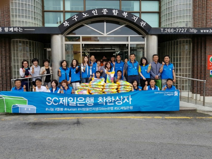 sc제일은행에서 쌀(10kg) 후원으로 노인돌봄기본서비스 사업과 연계하여
