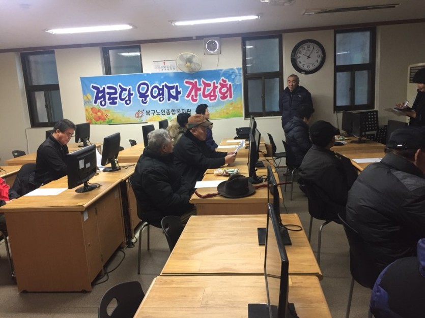 시범경로당 6개소(남성, 광신, 군왕로, 용두주공, 명지, 대자) 운영자(회장, 부회장, 총무) 어르신들을 모시고 2018년 경로당활성화사업 상반기 운영자간담회를 진행하였습니다. 관장님의 인사말씀을 시작으로 복지관 소개와 경로당활성화사업에 대한 목적, 프로그램의 자세한 내용을 소개해드렸습니다. 사업소개 후 식사를 함께하며 경로당이 활성화될 수 있도록 노력하자는 다짐과 함께 운영자간담회를 마무리하였습니다. 시범경로당 6개소 어르신들~ 1년동안 잘부탁드립니다!!