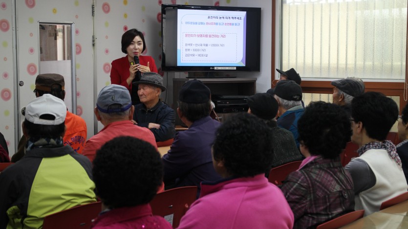 3월 27일(화), 광주 교통연수원과 연계하여, 최근 어르신들에 대한 교통사고가 증가함에 따라 교통안전에 대한 체계적인 교육을 통해 안전사고의 취약계층인 어르신들을 사고로부터 미리 예방하고,경각심을 도모하고자 교통안전교육을 실시하였습니다.