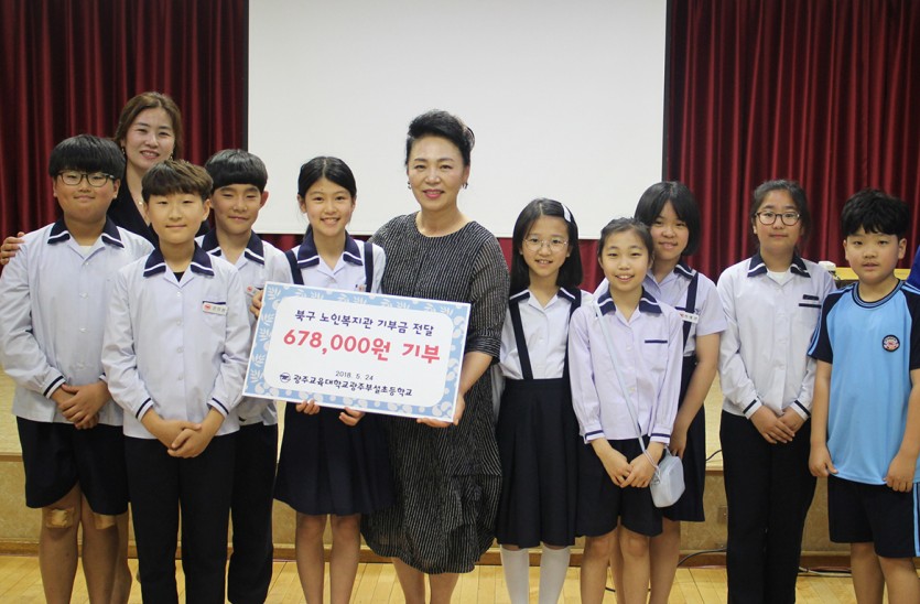 5월 24일(목), 광주교육대학교광주부설초등학교에서 모금된 기부금 전달식이 진행되었습니다. 학생들이 프리마켓 열어 모금된 기부금으로 어르신들의 복지에 도움이 되었으면 한다고 복지관에 전달해주었답니다. 학생들의 따뜻한 마음과 같이 소중한 곳에 잘 사용하겠습니다.