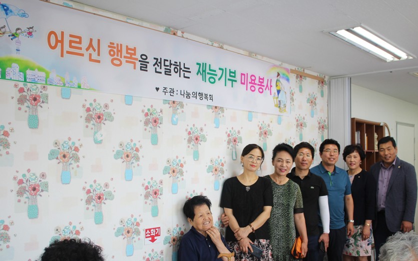 나눔의 행복회 봉사단의 재능기부로 어르신들은 두발정리를 통해 기분전환 하실 수
