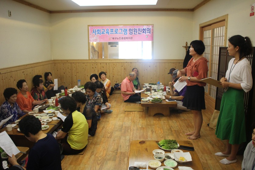 이번 회의에서는 하계방학일정 및 하반기 프로그램 접수 안내, 하반기 복지관 행사 일정 논의 등을 하였으며, 상반기동안 어르신들이 활동 하시면서 애로사항이나 논의하고 싶으셨던 부분을 함께 이야기 해보는 시간을 가졌습니다.