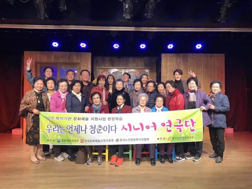 2018년 10월 30일 화요일 한국노인종합복지관협회, 문화체육관광부, 한국문화예술교육진흥원에서 지원하는 2018 복지기관 문화예술교육지원사업 노인연극<언제나 청춘> 현장학습을 다녀왔습니다. 공연 중간 중간 마다 배우들의 애드립에 열심히 호응 하시며 즐겁게 관람을 하셨답니다.