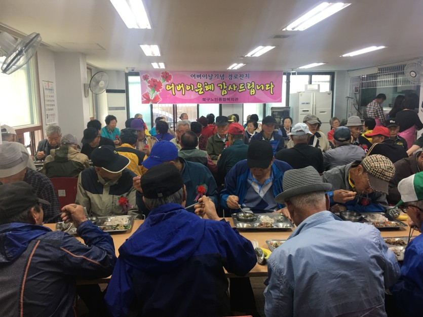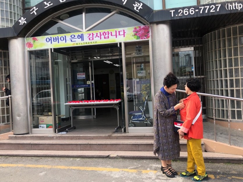 5월 8일(목), 어버이날을 맞이하여 북구노인종합복지관에서는 어르신들께 감사함을 담아 카네이션 꽃을 달아드리는 행사와 함께, 점심시간에는 특식을 제공해 드리게 되었습니다.